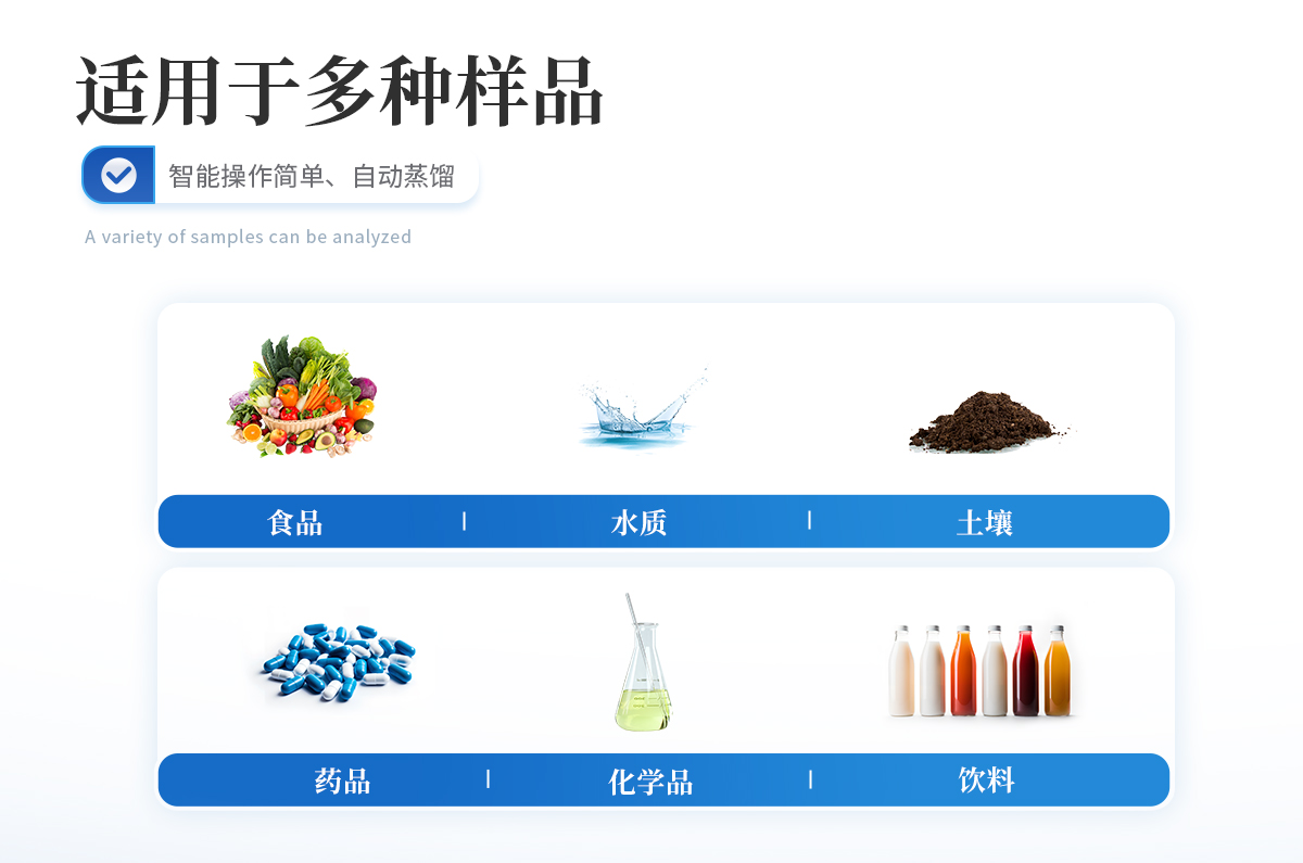 | 方法保存/读取 | 历史应用方法自动保存,自动加载 | 可保存≤1000种蒸馏方法,内置18种常用国标方法 | |