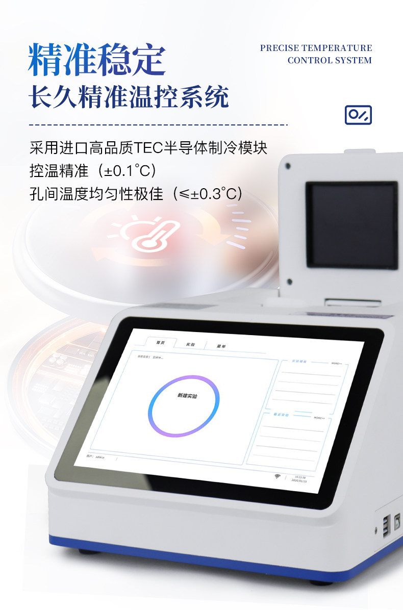 基于实时荧光定量PCR技术,聚焦动物体液、组织样本中病原体核酸精准检测。半导体温控确保扩增稳定,多通道并行,支持定性定量,适配实验室与养殖场现场。操作简捷,报告自动生成,助力疫病早筛早控,降低养殖风险。