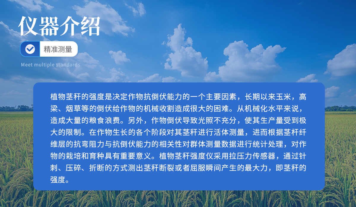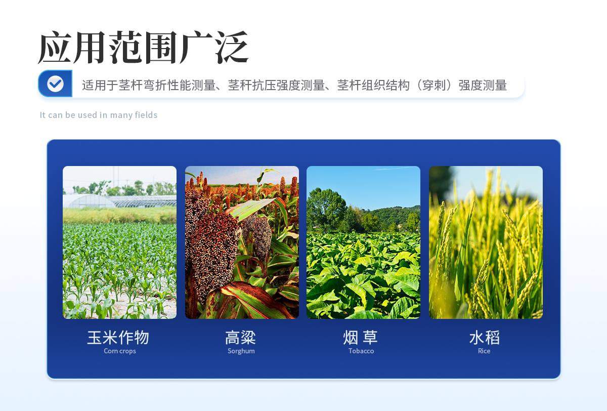 产品介绍: 产品简介:植物茎秆的强度是决定作物抗倒伏能力的一个主要因素,长期以来玉米,高梁、烟草等的倒伏给作物的机械收割造成很大的困难。从机械化水平来说,造成大量的粮食浪费。另外,作物倒伏导致···2026-02-03