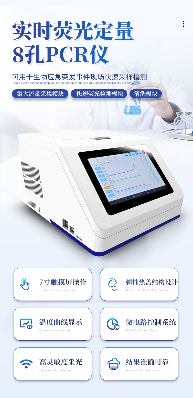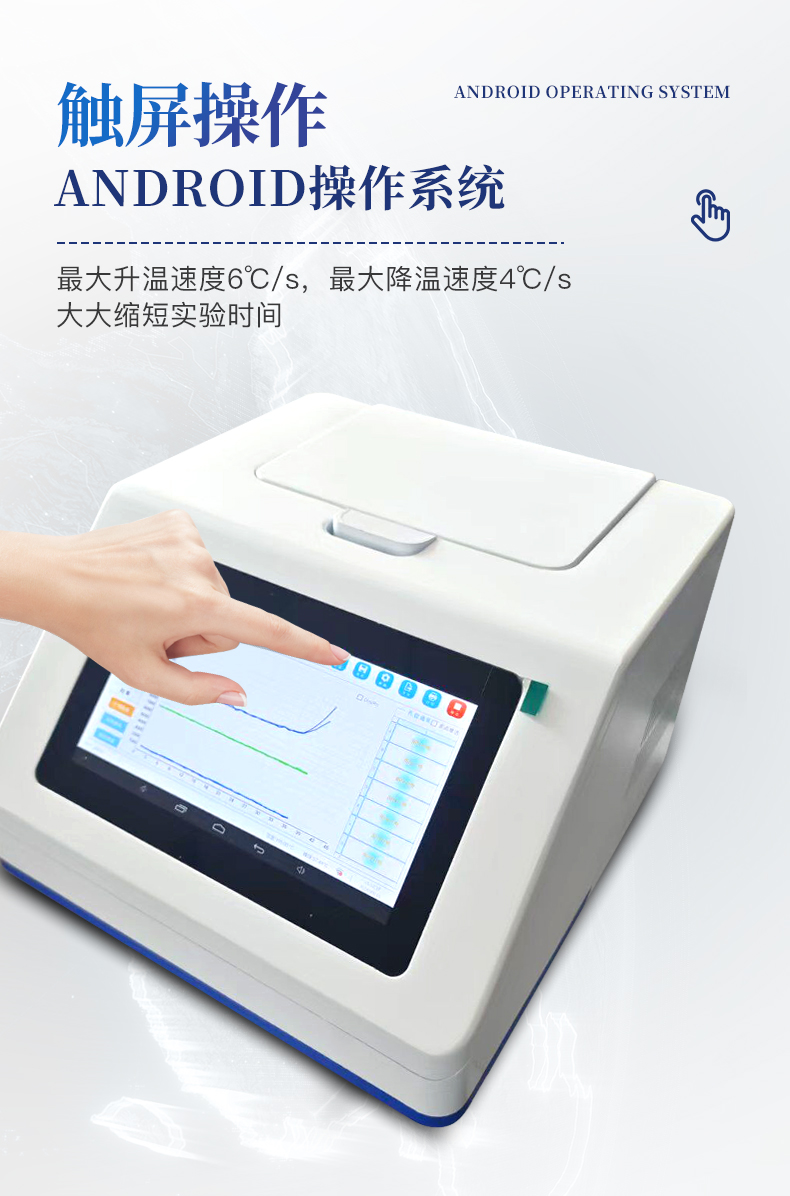 YT-P08型号 实时荧光定量PCR仪器的原理:聚合酶链式反应(polymerase chain reaction,PCR)是一种用于放大扩增特定的DNA片段的分子生物学技术,它可看作是生物体外的特殊DNA扩增,由高温变性、低温退火及适温延伸等几步反应组成一个温度循环周期,使目的基因得以迅速扩增,具有特异性强、灵敏度高、操作简便、省时等特点,是基因扩增技术的一次重大革新。PCR技术可将极微量的目标DNA特异地扩增上百万倍,从而大大提高对DNA分子的分析和检测能力。