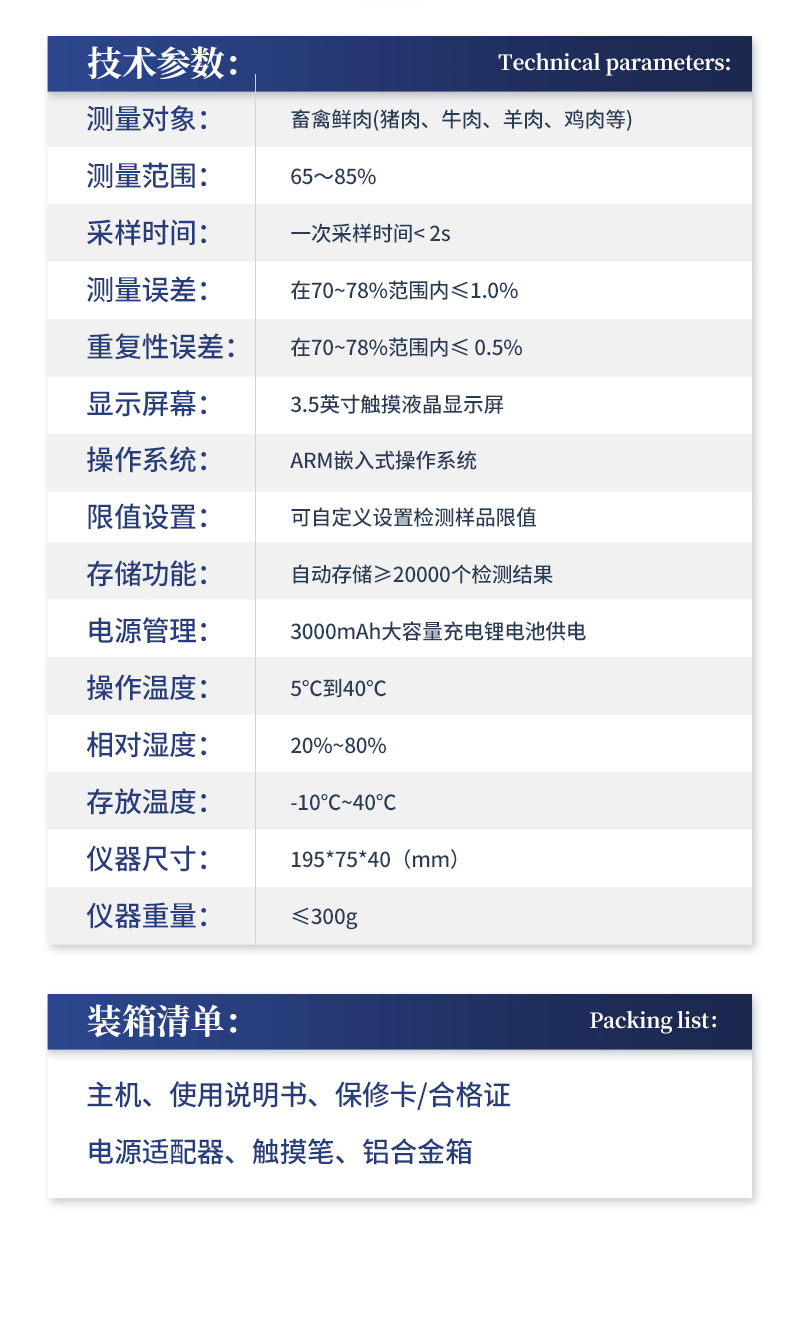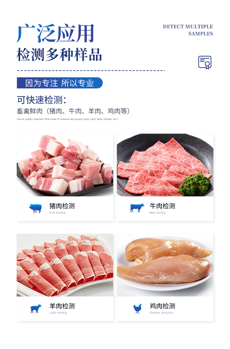 1、测量对象:畜禽鲜肉(猪肉、牛肉、羊肉、鸡肉等);