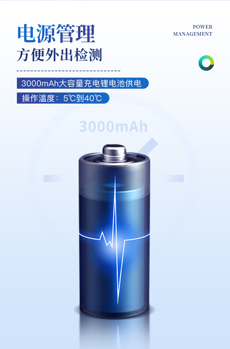 10、电源管理:3000mAh大容量充电锂电池供电;