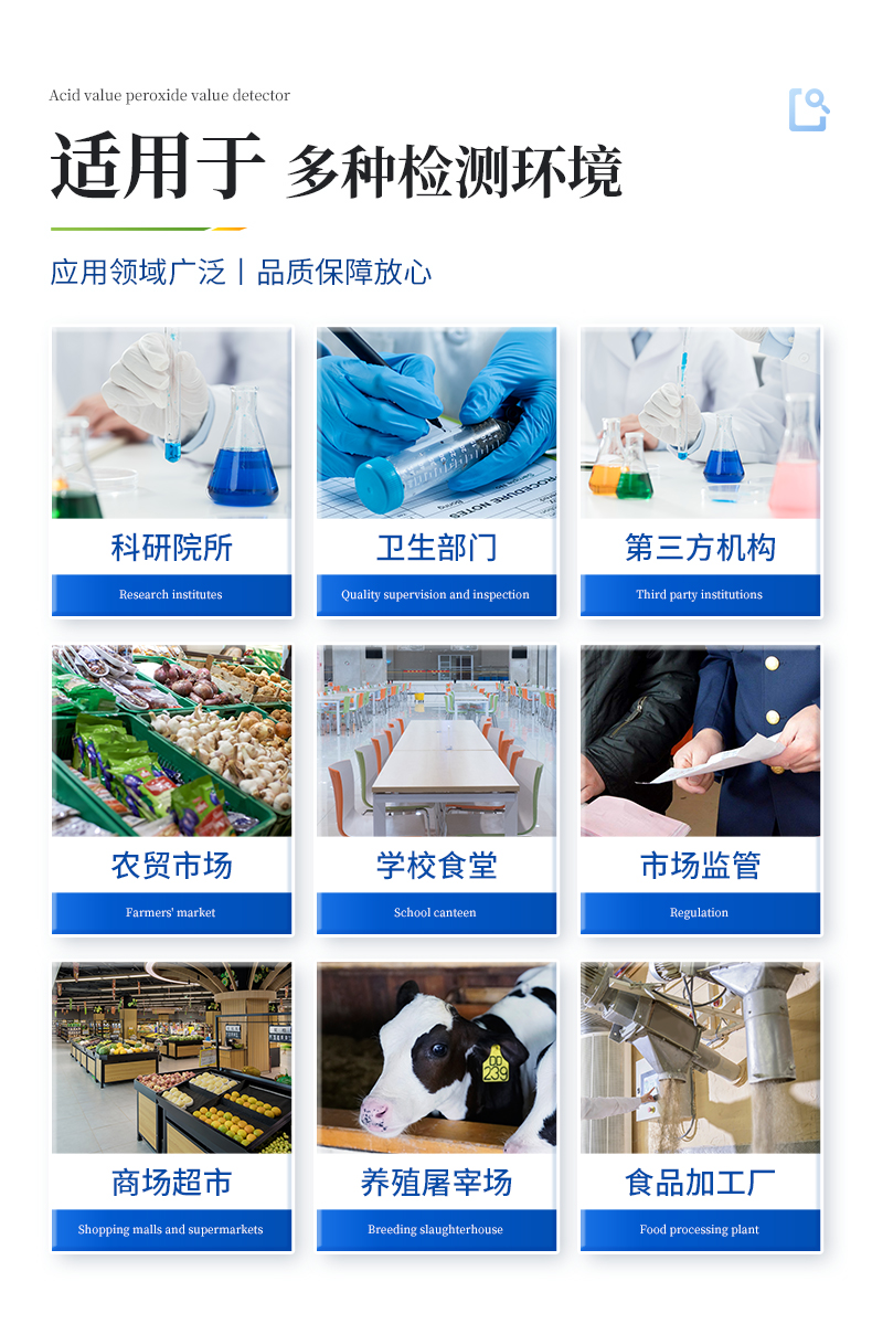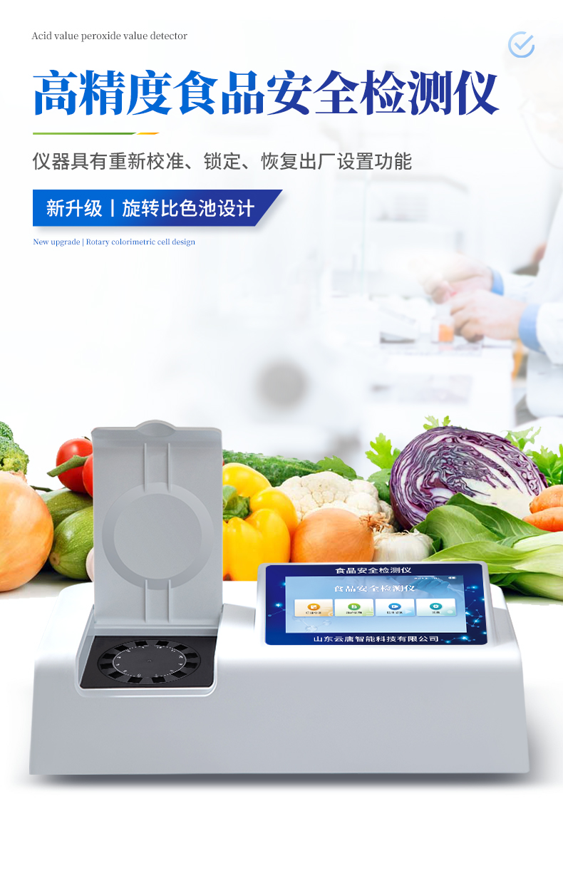 | ◆ 山东云唐智能科技有限公司生产的丙二醛检测仪为集成化食品安全快速检测分析设备,采用台式一体化设计,能够快速检测食用动物油脂包括食用猪油、牛油、羊油、鸡油和鸭油等油脂中的丙二醛含量;仪器预留其他项目检测程序和端口,根据日后需求可进行远程升级 | ◆ 该过丙二醛检测仪为集成化食品安全快速检测分析设备,目前已于市场监管局、食品深加工企业、学校食堂、炼油厂、配送中心、商场超市等单位广泛使用 |